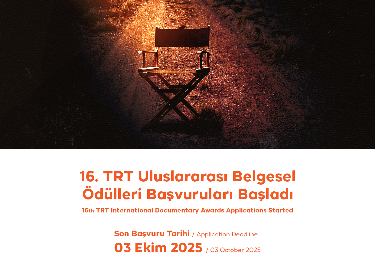 TRT Uluslararası Belgesel Ödülleri, yarışma takviminde açıklanan tarihte başlayacaktır. Bu tarihten önce herhangi bir başvuru alınmamaktadır.
